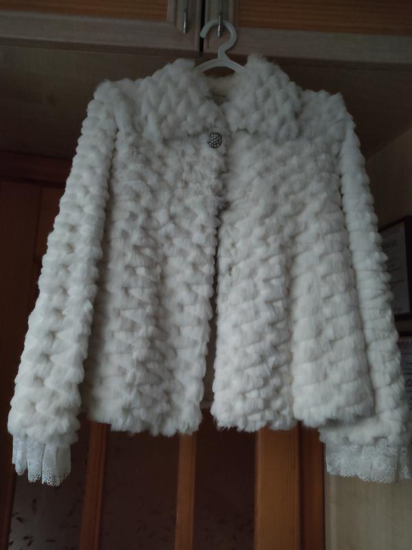 Шуба из меха кролика на девочку 12-14 лет или подростка. ПОГ 42. Из нюансов-немного пожелтел мех в области шеи. При носке не видно. Крючки на месте, украшена декоративной пуговкой у горловины и кружевом "шанталь" на рукавах. Отменная нарядная вещь к праздничному платью.Смотрите другие мои объявления- есть отличные вещи по хорошим ценам. Разгружаю гардероб.