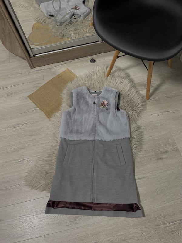 Крута подовжена жилетка для дівчинки. Стан нової речі. Нереально м'яка ягеньке хутро. Дуже хороша якість. Довжина - 85см, ширина - 44см