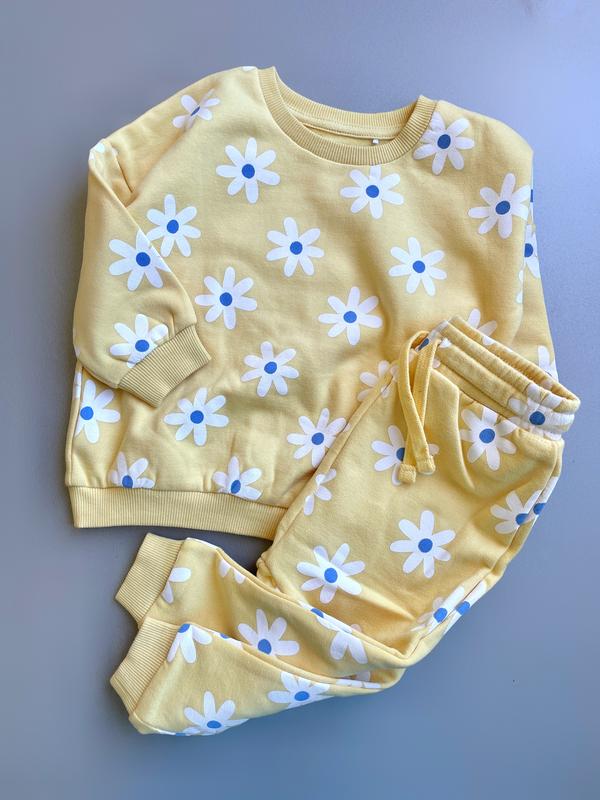 Неймовірно стильні костюмчики🌸 Гарний принт, утеплені та просто ідеальні. На поясі функціонуючий шнурочок, можна регулювати. Манжети еластичні та гарно прилягають. Розміри: ✔️2-3 роки(92-98см)