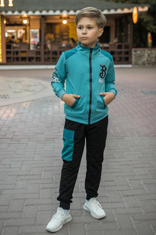 Костюм спортивний f&d для хлопчика 7-15 років стійка, бірюзовий 128