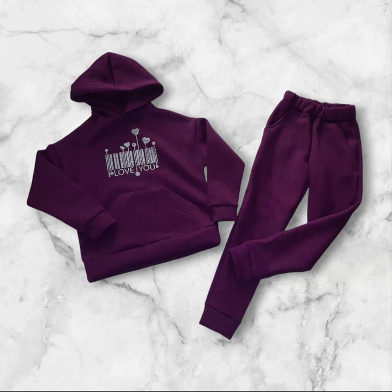 Дитячий спортивний костюм на дівчинку утеплений "i love you" бордовий зріст 104 см - 146 с...