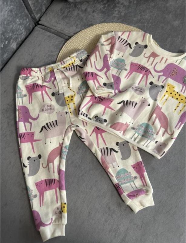 ⁉️розпаровка комплекту тому йде без бумажної бірочки ✅р. 92-98 але повномірить на 104 орієнтуватися на заміри 👇👇👇 Кофтинка : Довжина від плеча до низу 35,5см, від шиї 38см рукав від плеча 28см від шиї 39см довжина під руками 33см ширина низ 28см тягнеться до 33см Штанці: довжина від початку до низу 53см посадка 25см, крок 32см пояс резинка 24см тягнеться трішки шнурочки робочі