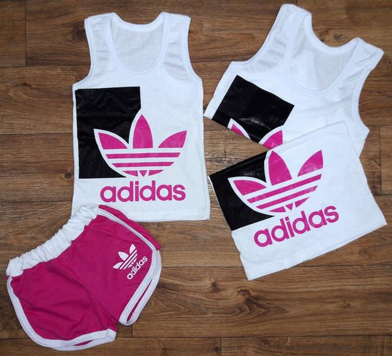 Комплекти літні adidas для дівчаток та хлопчиків р. 80-116 3 кольори. новинка! рожевий