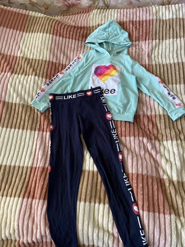 Оплата поперед оплаті Довжина рукава-41 см Довжина кофти-44 см Ширина кофти-36 см Ширина штанів (пояса)-28 см Довжина штанів (від пояса)-71 см Розмір кофти-122 Розмір штанів-134 Носила обережно