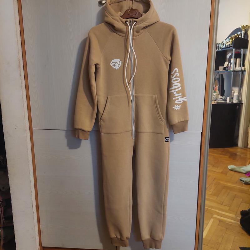 Флісовий комбінезон на зріст 146 см — 870 грн, тринитка на флісі, кантон дуже щільний і теплий.Капюшон подвійний і дуже теплий, можна носити замість шапки.Ззаду вставлена гумка, підкреслює талію і не створює об'єму. Після однієї господині,фліс щільний не збився. г.Киев