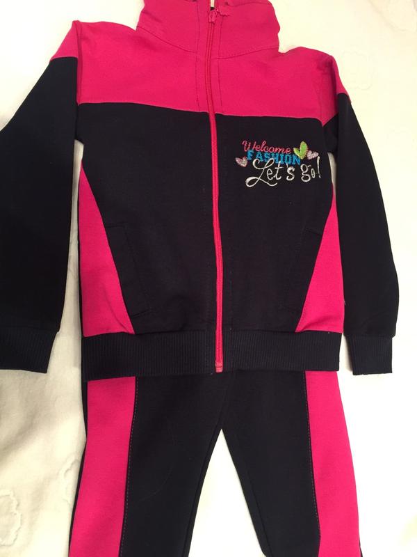 Спортивний костюм . Колір-яскраво рожевий. Україна трикотаж Склад: 100% соттон. Розмір 116 ширина грудей 33см рукав 41см довжина 44см. Штани довжина 70см крок 50см.