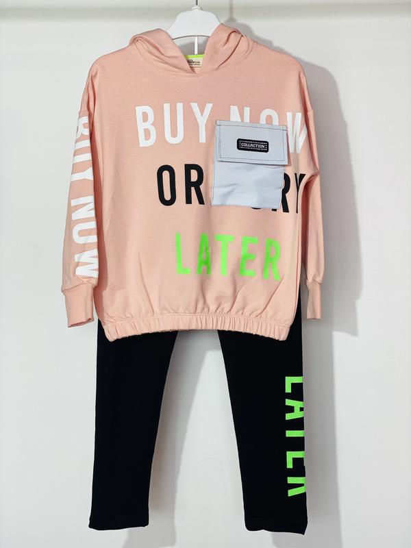 Костюм для дівчинки, худі з капюшоном і нагрудною кишенею зі світловідбиваючої тканини, легінси на широкій гумці в поясі. Дуже гарний костюм для дівчинки!