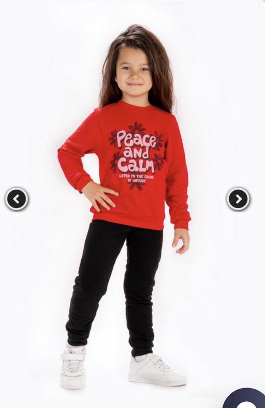 Размеры: 98-134 Полотно: начес Замеры: в описании Костюм выполнен из трикотажного полотна "начес" - очень мягкого и приятного на ощупь. Модель состоит из джемпера и брюк, по переду джемпера нанесен накат методом шелкотрафаретной печати. Костюм отлично подходит для занятий физкультурой, спортом, отдыха на природе, вечерних прогулок. Небольшой начес с изнаночной стороны хорошо сохраняет тепло. Полотно: начес. Состав: 100% хлопок. Рекомендации по уходу: стирать при температуре не более 30°C. Допускается машинная стирка в режиме "ручная" или "деликатная". Полотно натуральное по составу, после стирки даст усадку. Просьба это учитывать при выборе размера.