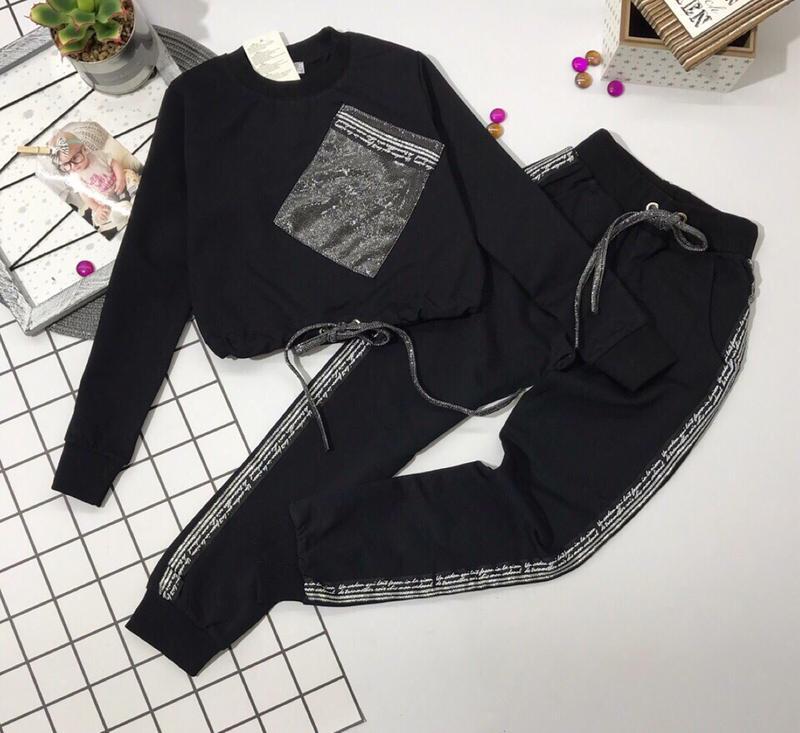Спортивний костюм на дівчинку Розмір: 16лет Колір: Темно-синій Склад тканини: 94% Бавовна, 6% Likra Виробник: Туреччина 16лет - Кофта: довжина-44см, напівобхват грудей-43 см, рукав-56см; штани: довжина-92см, кроковий-69см, напівобхват гумки-32см, напівобхват стегон-43см