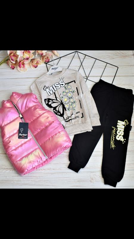 ✅Вир-Во: Туреччина ✅К-т трійка(желет, реглан, штани). ✅Наповнювач: синтапон 100. ✅Додатково: Є захист блискавки.в штанах є карман. ✅Підкладка-сатин ✅Заміри:Желетка довжина/ширина, реглан довжина/ширина/рукав від плеча, штани довжина /крок/попа 104-ж.37/30, р.39/28/37, шт.57/39/28 ✅Можлива похибка у вимірах +- 1 см