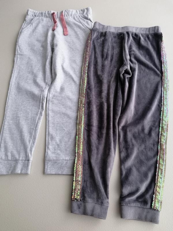 Ціна за все,продаж лотом. Світло сірі нові, велюрові-вживані в гарному стані. Світло-Сірі з начосом Alive, довжина по боку 73,пояс 30,бедра 36,кроковий шов 53. Велюрові George, довжина 71,пояс 29,бедра 37,кроковий шов 52.