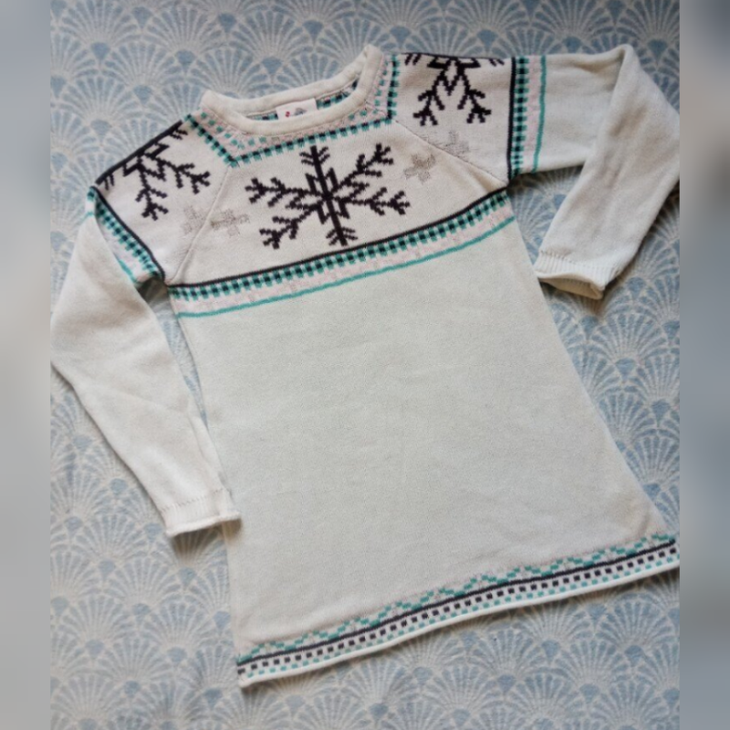 Тепленькое нежное платьице на 6-7 лет от фирмы Topolino. Вещь в отличном состоянии. Замеры: Ширина под проймами 38 см (полуобхват) Длинна рукава от ворота(шеи) 54 см Ширина в талии 38 см (полуобхват) Общая длинна 61 см
