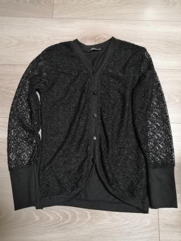 Кофтинка трикотажна спинка і перед, покритий кружевом перед і рукав кружево нова розмір 164, довжина рукава зовні 56,внутрішня 47,плечі 37,під руками 41,довжина кофти 59см
