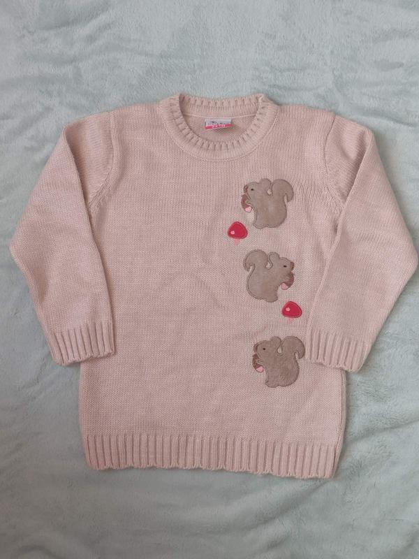 Тёпленький свитерок на девочку 3-4 лет. Смотрится очень мило, качество супер! Замеры: длина - 47 см ПОГ - 33 см длина рукава - 36 см