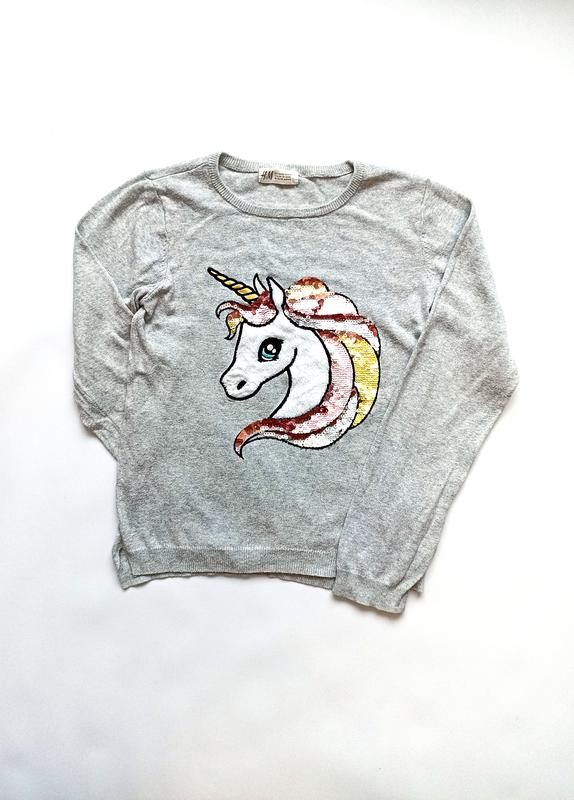 Кофта для дівчинки з Єдинорогом🩶🩶 🔸️Стан ідеальний від H&M, є маленька дірочка 📏Розмір 9-10 років (134-140см) Довжина 50 Рукав 54 💰 Ціна 65 грн