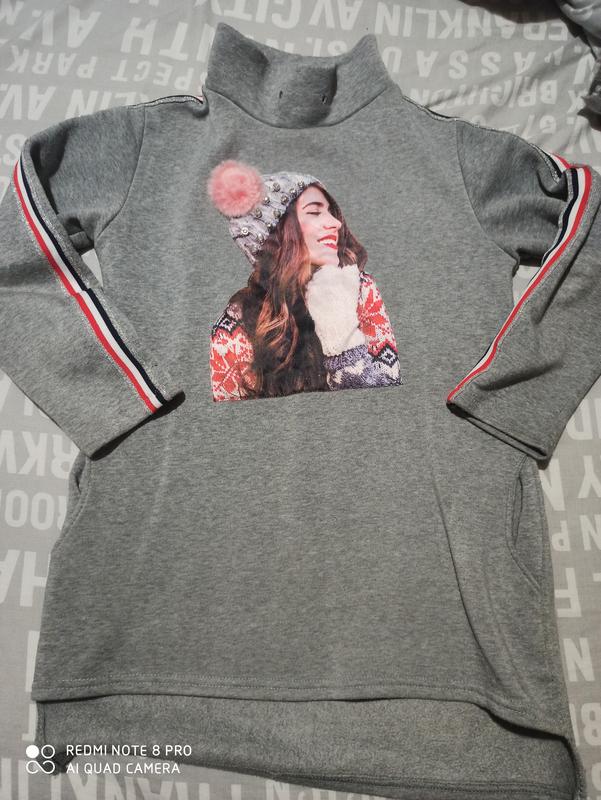 Тепла кофта сзаду подовжена, має кармани. Довжина спереду 59 см, сзаду 65 см, рукав 45 см. Єдине, що шнурок , що був вдітий в горловину відсутній, так як ми його не носили.