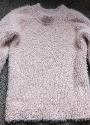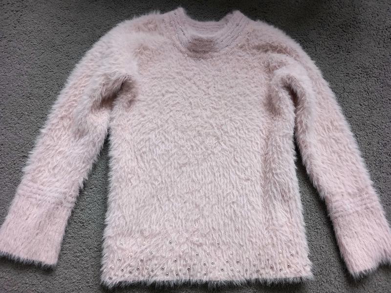 М'кенький тепленький светр для дівчинки на 6-7 років (на бірці 8 років, але нам вже сильно замалий). Гарної якості і у гарному стані. Довжина вироба 49 см. Прикрашен намистинками