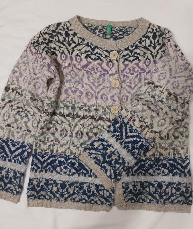 Кардиган на ріст 130 см, 7-8 років. Марки Benetton, довжина 45 см, обхват грудей 76 см,довжина рукава від плеча 38 см.
