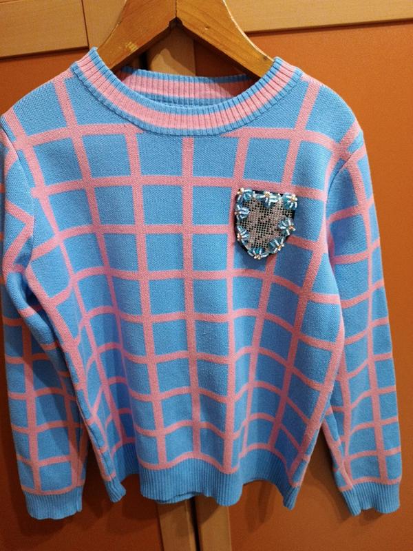 колiр блакитний з рожевим, на 7-8-9-10 рокiв, стан iдеальний,стан iдеальний, iз'яни на останньому фото (вiдпоролася лейба), бiрка зрiзана, замiри: плечи 34, груди 43, талiя 42,низ резинка 41, довжина 51,рукав 52