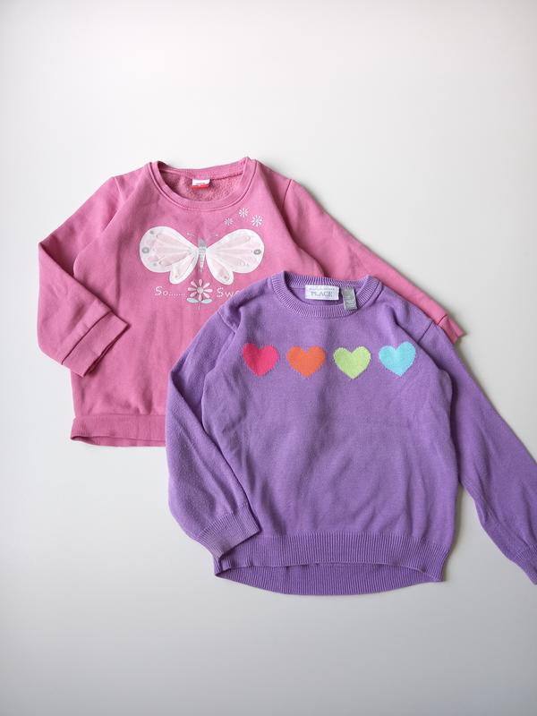 Розмір вказано 4 роки. Рожева світшот- довжина 41. пог 34. рукав від шиї 39. Фіолетова - довжина 39- 42. поГ 34. рукав від шиї 43. Стан дуже хороший, для дому вулиці бігати супер. ❗️Мінімальна сума замовлення 150гр❗️