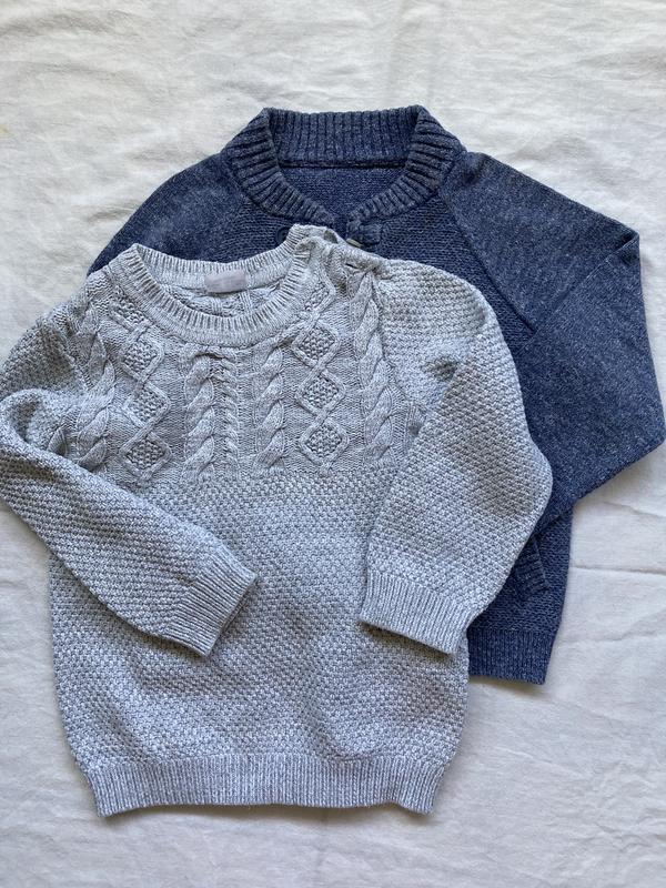 Светр і кардиган, стан ідеальний, якість чудова, можете сміливо прати у машинці, не кошлатиться, приємні до тіла. Светр по бірці 9-12 місяців, кардиган 12-18 місяців, дитина носила у рік-півтора, але залежить від зросту, можу зробити заміри. Ціна вказана за 2.