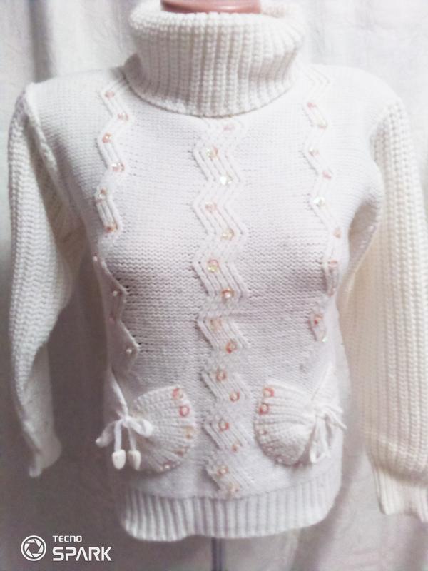 хорошего дня рада здоровать вас на своей странице все вещи в хорошем состоянии теплый свитер на девочку, мягкий, не кусается, тянется, и следы носки катышки размер не указан, ориентируйтесь по замерам плече 11см рукав 49 см спинка 40 см длина 50 см полуобъем груди 44 см покупкой будете довольны,рич хорошая покупаете то что на фото без претензий перед покупкой все хорошо замеряйте, обмену и возврату нет доставка НП и УП после оплаты на карту 2 вещи приобретаете, получаете подарок