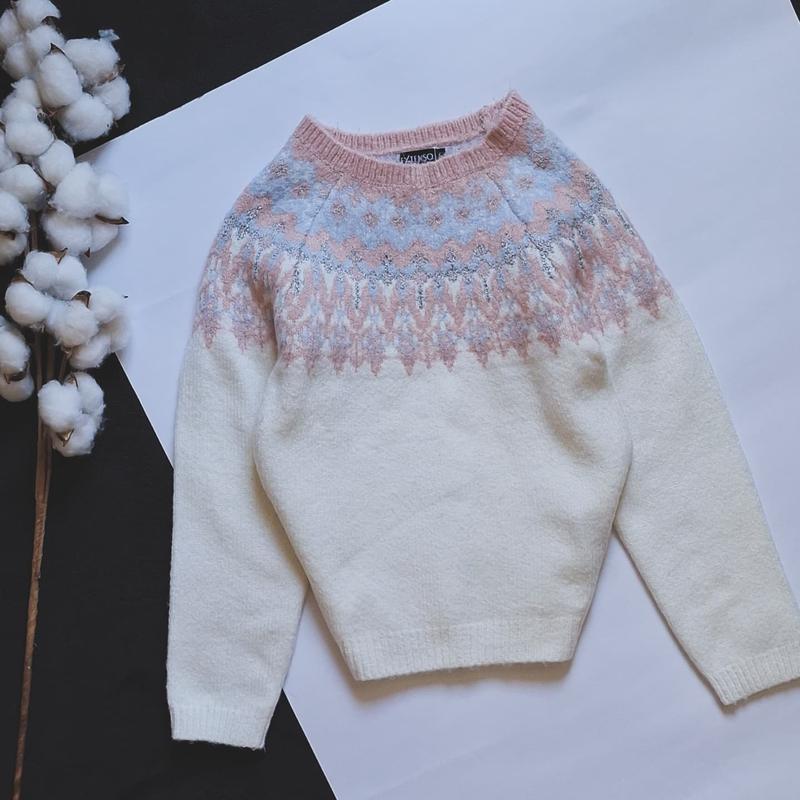 Светр молочний з візерунком ✔️ 6р ✔️ Гарний ✔️ довж-44, шир-30, руки-49 від горловини