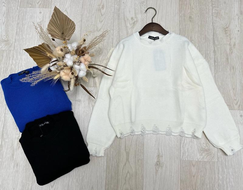 Гарний та теплий светрик Виробництво Туреччина Мілка якісна вʼязка З елементами рванки Розмір універсальний, крій оверсайз , чорного нема ЯКІСТЬ ЧУДОВА!!! РЕКОМЕНДУЮ!!! Довжина/ширина/рукав повністю 152-170см-50/57/64 Арт кі