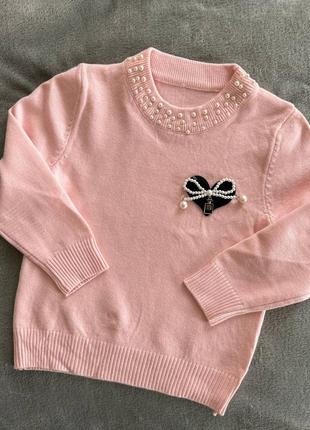 Светр кашемір неймовірної якості! Горловина прикрашена напівбусинами. М’який, теплий, зручний та неймовірно приємний до тіла. Розмір: 98 (по бірці 110)- рукав 32, довжина 35 104 (по бірці 120)- 36/39 110 (по бірці 130)- 37/41 116 (по бірці 140)- 39/44 122 (по бірці 150)- 42/47 Ціна: 495 грн