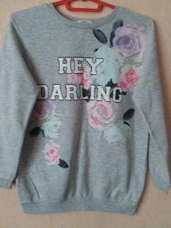 H&M, 10-12р. коттон 57%, полиэстер 43%, с начесом, тепленький, цветочный принт, плечи 38, ПОГ 46, ПОБ 46, рукав 53, длина 60