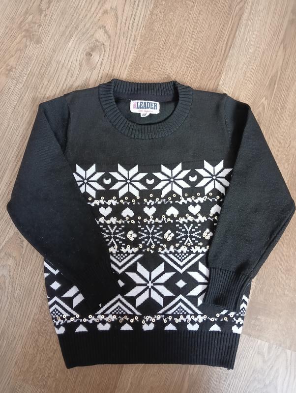 Світерок для дівчинки. Розмір на етикетці 4. Більш підійде на вік 5-6 років. Довжина 45см., в грудях 34,5см., рукав від плеча 39см., плече 7см., в плечах 28см. Без дефектів, в гарному стані.