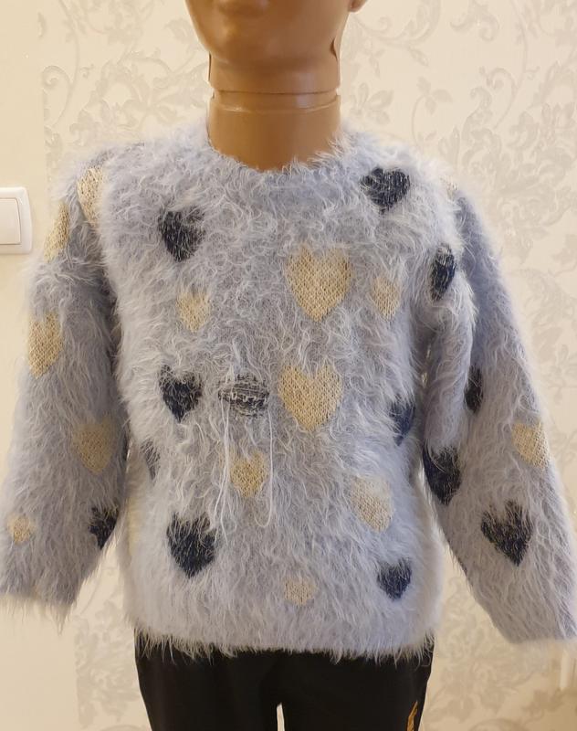 свитер для девочки цвет серо - голубой с сердечками возраст 4 года длина изделия 42 см длина рукава 35 см о/г 66 см материал полиамид 70 % акрил 30 %