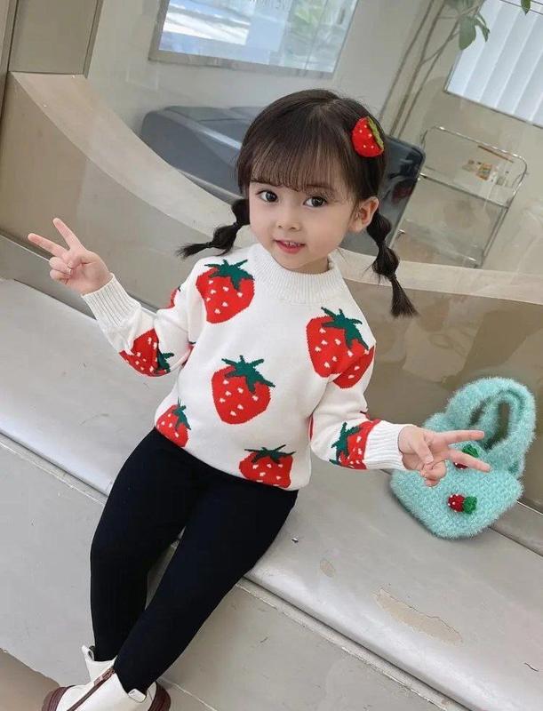 🍓Свитер для девочек🍓 🔹Цвет - белый 🔹Размер 110, 120, 130 Милые свитера для девушек, мягкие и удобные, вязаные с маленькими клубничками, с длинным рукавом В наличии ✅