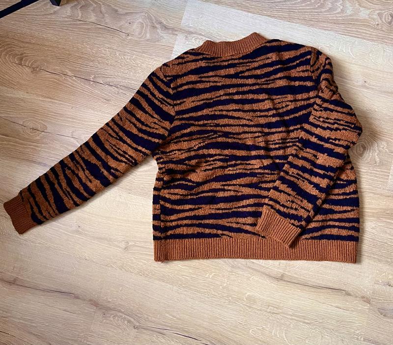 Тигровий милий светр, підходить для осінньої/весняної погоди. Дефектів немає, хіба що трішки розтягнутий. Продаю так як давно не вдягаю. Розмір M