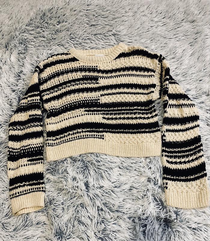 Дитячий светр Zara, короткий, з з широкою вʼязкою, розмір 152 (11-12 років), чорно-бежевий в ідеальному стані Склад: 100% Cotton Заміри: Довжина виробу - 45 см Півобхват грудей - 44 см Ширина виробу знизу - 42 см Довжина рукава від шиї - 72 см Ширина рукава - 13 см