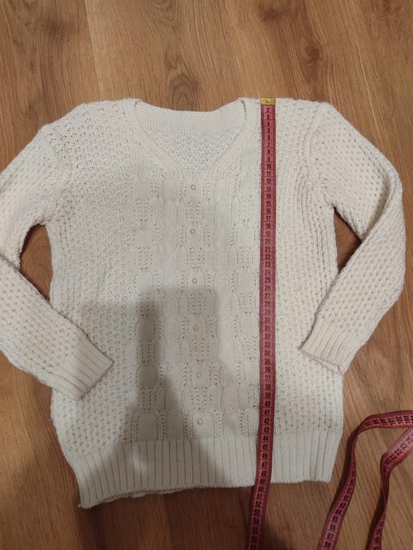 Светр молочного кольору, підійде на дівчинку 7-8 років,але краще орієнтуйтесь на заміри,бо бірки нема