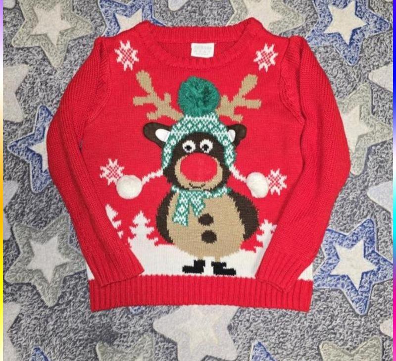 F&F новорічний светрик 2-3 р по бірці д 36 см шир 30 см рукав 36+4см плече в ідеальному стані 150 грн може бути як унісекс Оплата на карту приват 100% Безпечною оплатою не відправляю