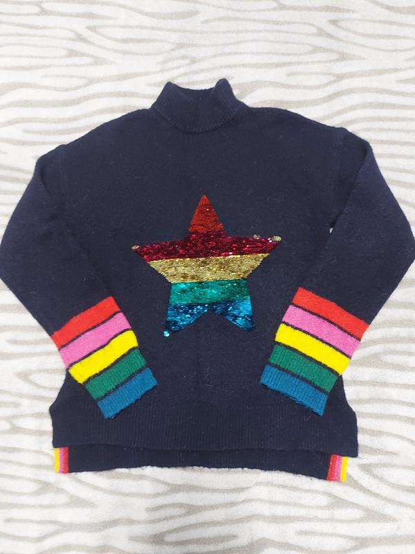 Светр для дівчинки Next підійде на зріст 146-152 см. М'якенький і теплий (у складі 8% вовни) в ідеальному стані. довжина виробу спереду - 53 см довжина виробу за спинкою - 56см довжина рукава від горловини - 65см