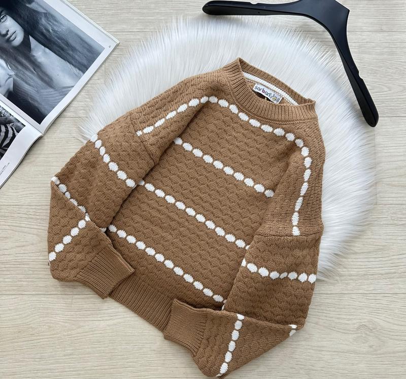 через кнопку купити тільки повна оплата!!! Базовий светрик для стильних дівчат 🤩 Стандартна довжина з фактурною в’язкою та контрастними смужками 🔝 Спущене плече, м’які еластичні манжети та низ забезпечують комфорт і гарну посадку 😍 Теплий, приємний до тіла і зручний для щоденного носіння 🍂❄️ 📍 Виробник: Туреччина 📍 Склад: 100% акрил ЗАМІРИ ⤵️ +/- 1-2см!!! ◾р.11/12- довжина від плеча 46см/ рукав від горловини 57см/ ПОГ 47см ◾р.13/14- довжина від плеча 50см/ рукав від горловини 61см/ ПОГ 52см