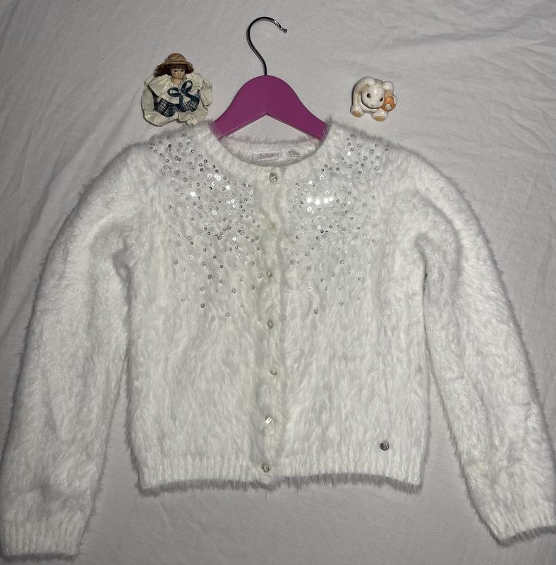 свитер для девочки в идеале. размер 140 на гудзиках. Мягкий, не Калый. длина 40см. объем груди 37,5см. длина рукава от плеча 46,5см.