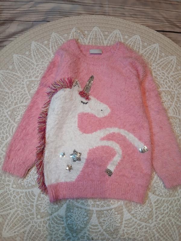 теплий,красивий светр з єдиноріжкою на 7 рочків.Стан супер.Довжина 47см,рукав 47см,ширина 33см