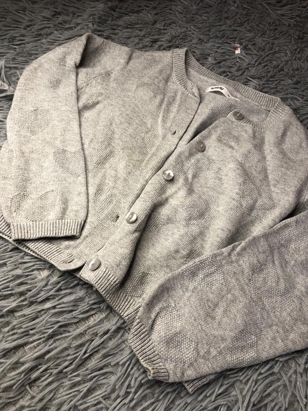 Сірого кольору  Кофтинка розмір 98  Дрібна в’язка Принт сердечка