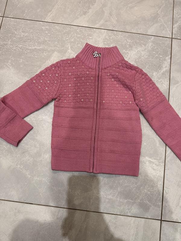 Світер рожевий для дівчинки 110 см на замок вʼязаний Груди 30 Довжина 38 Рукав від шиі 44
