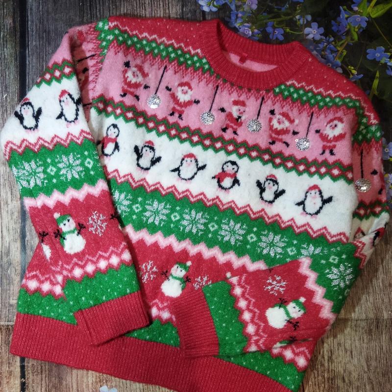 Теплый свитер для девочки с новогодним принтом от бренда George Размер 10-11 лет Стан нового
