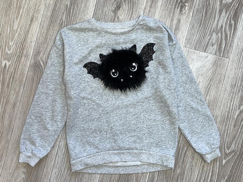 Світшот із кажаном Стан чудовий без дефектів Малюнок із хутра та блискіток 🏷️H&M Див. заміри Довжина 51/56. ПОГ 43. Рукав від шиї 60
