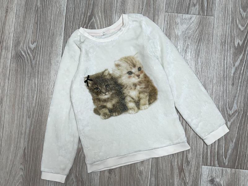 Махровий світшот з котами Стан чудовий 🏷️H&M 6-8 лет/122-128 Довжина 49. ПОГ 34. Рукав 47