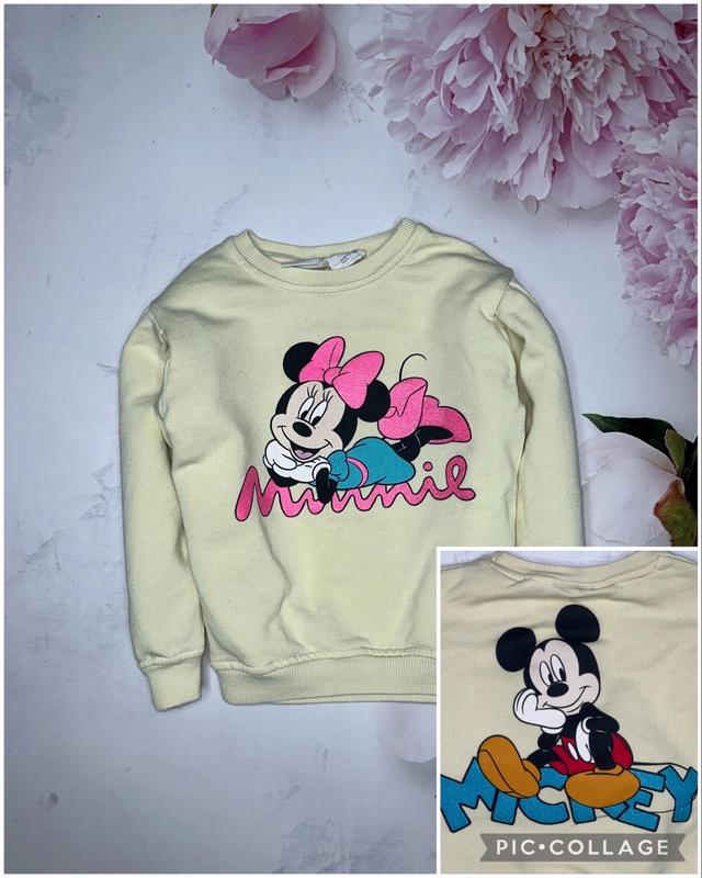 Свитшот лимонного цвета с Минни и Микки Ткань трехнить петля 🏷️Zara 2-3 года/98 Длина 37. ПОГ 40. Рукав от шеи 42