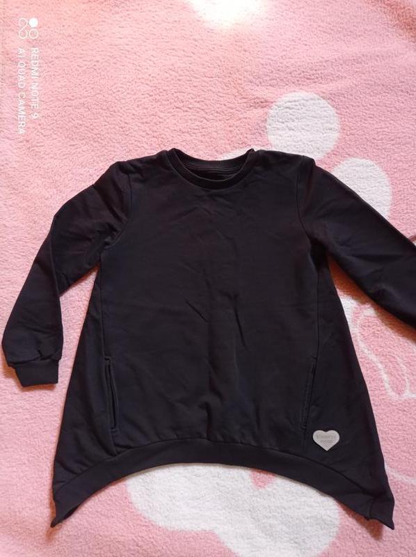 Кофта на дівчинку ,зріст 128 см.,одягли один раз по бокам длінша ,орегінальна,довжина 52 см,ПОГ 38 см, рукав 42 см.,