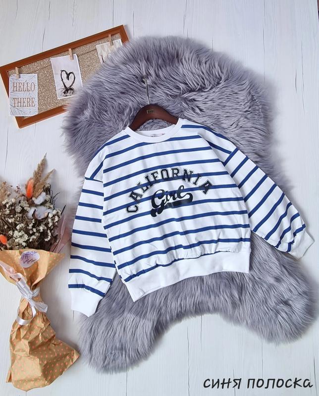 ландыш Тренд сезону Світшот тканина двохнитка(синя полоска) Чудова якість ! 128(1 шт)-довжина 42,пог 44,рукав 52 134(1 шт)-довжина 44,пог 45,рукав 54 140(1 шт)-довжина 46,пог 46,рукав 57 158(1 шт)-довжина 52,пог 53,рукав 64 +-2 см
