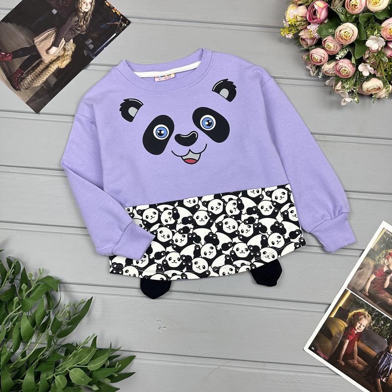 🌹Світшот панда фіолетовий. Прикрашений милим принтом. Внизу є імітовані лапки. Всередині ніби мікро начіс. Тканина двунитка. Виробник Туреччина. 📐Заміри: рукав від шиї 110 - довж. 39 / рукав. 44 / напівобхв. 35 116 - довж. 42 / рукав. 47 / напівобхв. 37 122 - довж. 43 / рукав. 52 / напівобхв. 40 128 - довж. 47 / рукав. 54 / напівобхв. 40